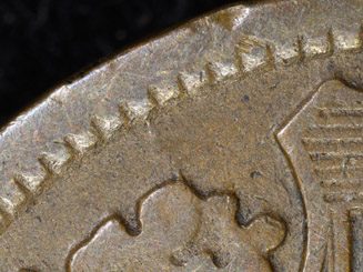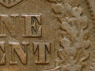 die crack: 1. Die crack from the rim at 11:00 extends downward into the top of the left wreath.