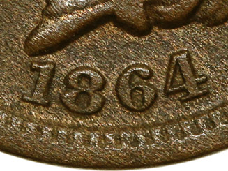 The Obverse 56 date position is very similar to that of Obverse 55 from the 1864 Bronze Variety 39 Die Pairing.