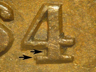 Obverse 13 is identified by repunching to the west on the 4, with date placement at LH.