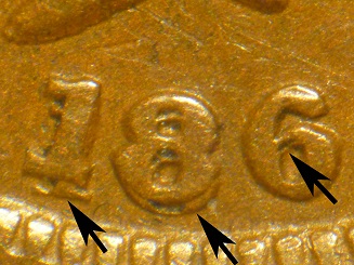 Die Gouges Off Oak Leaf at 9:30 | ![]() Die Chip on E of CENT | ![]() Reverse Die Stage B Die Crack from 11:00 |
