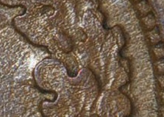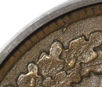 crack forms from 11:00 downward through the left wreath and clash marks