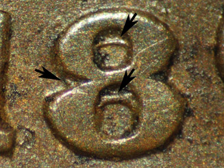 south within the lower loop of the 6. Obverse 11 has acquired