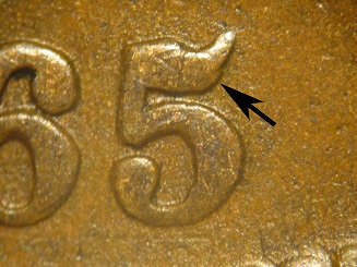date repunching for obverse 7 is visible only on the 5 for the plate