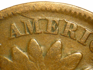 crack: 1. Die crack from the rim at 2:30 and continuing southward connecting the tops of MERIC of AMERICA.