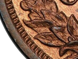 1868 Reverse A is observed with die lines extending upward to the northwest from the olive leaves.