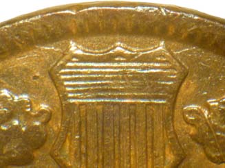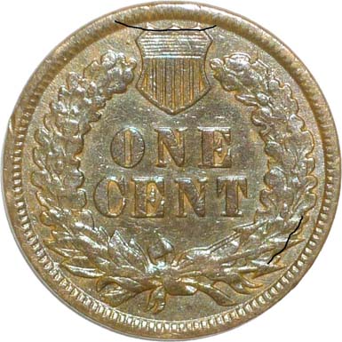3. Die crack from the denticles at 7:00 that connects 'UNITE'