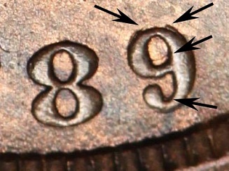 The obverse 10 date repunching of the 18 digits is minor, with the base