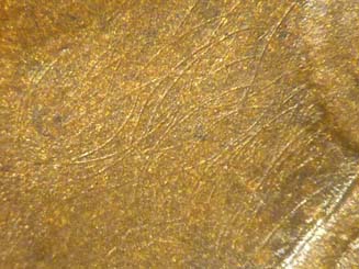 die polish lines, with a prominent one from the bottom of the neck into