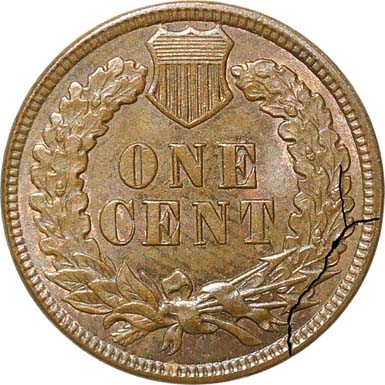 reverse, with a primary die crack developing between 3:15 and 5:00.