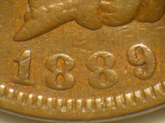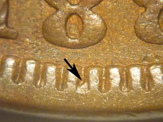 digit in th denticles below and to the right of the 1st 8 of the date.