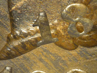 die lines along the base of the portrait and a repunched 9. Upon