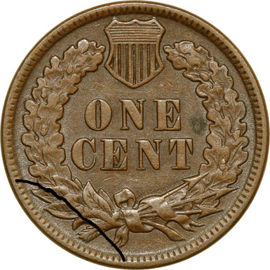 Reverse AAJ has acquired a light clash mark through (C)ENT and has developed the following die crack: 1.