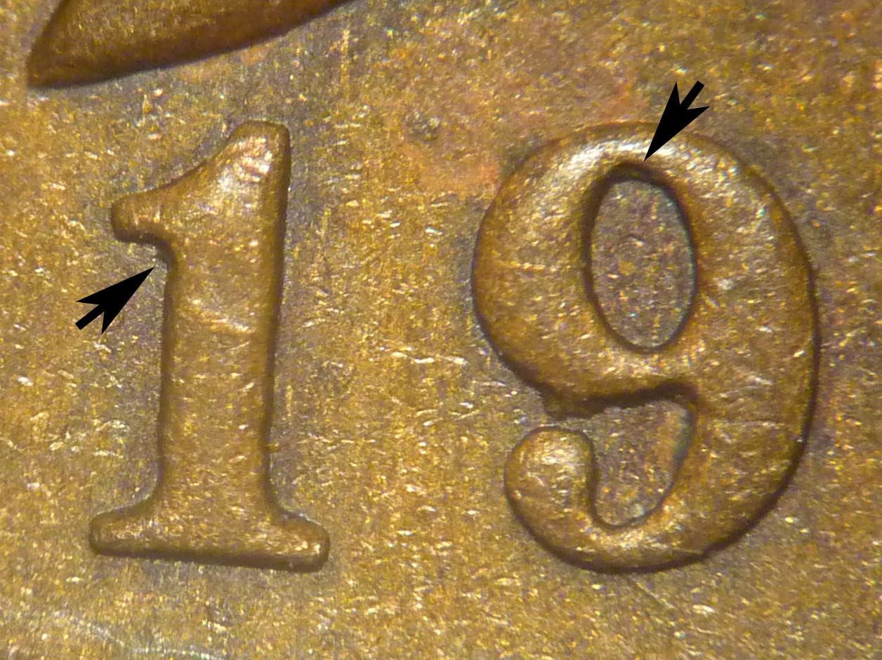 | Macro Photography Of Obverse 18 Date Position, Misplaced Digits and Variety 18a Misplaced Digits | ||