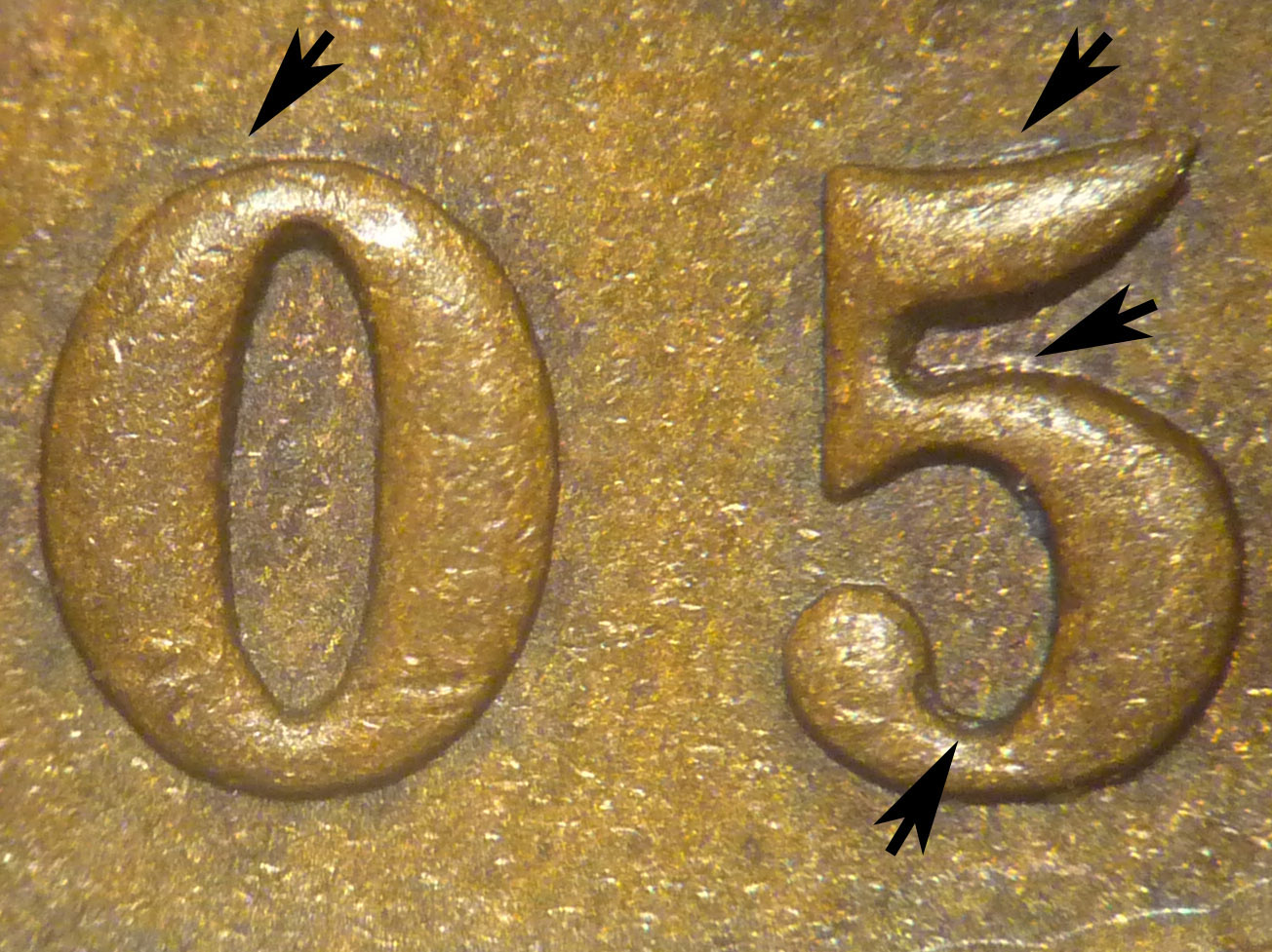 ![]() Repunched 0 and 5 (Click Image To Enlarge) |