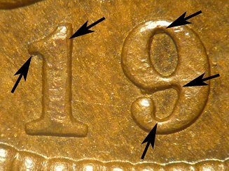 The date repunching of Obverse 39 is very similar to that of Obverse 54 of the Variety 54 die pairing.