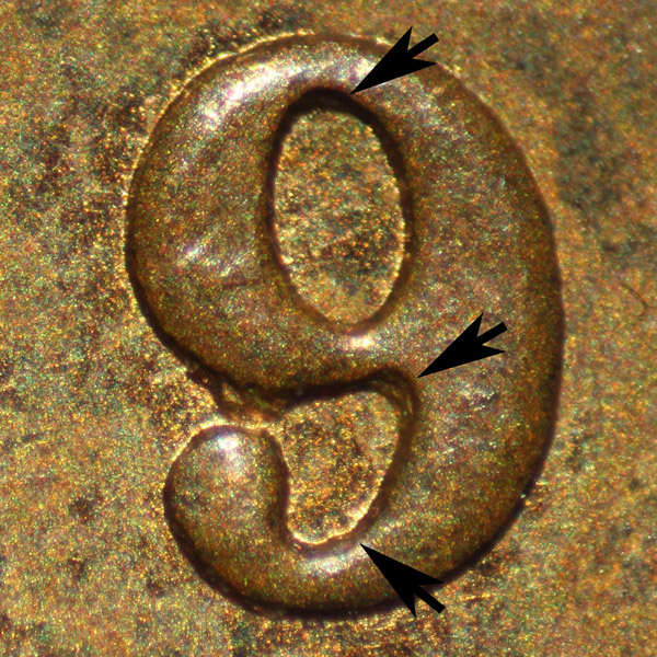 | Macro Photography Of Obverse 56 Repunched Digits | |