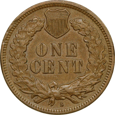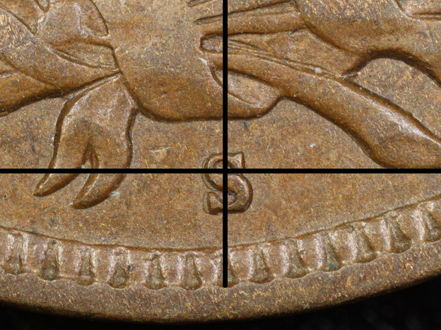 Reverse A mint mark orientation is centered, low and tilted left.