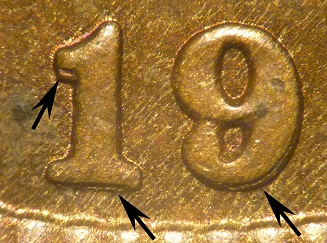 Comments: The obverse 9 repunching should be easily seen, especially the repunching below the flag of the 1.