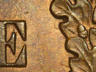 AO has developed clash marks to the right of the denomination from a clashing event with Obverse 41.