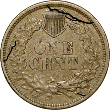 crack at the upper right wreath and continues into the upper right side