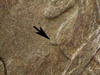 hair curl under the ear, a die chip in front of the eye, a die chip on