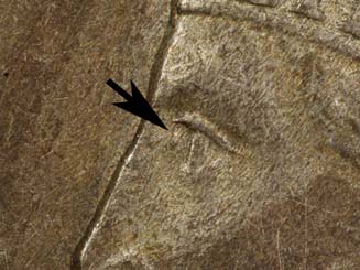 LIBE(RT)Y. Obverse 15 has developed the following die crack: