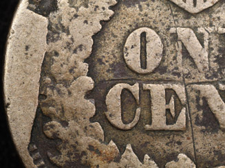 1. Die crack from the rim at 3:00 extends downward into the