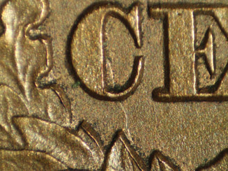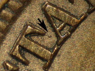 ![]() Obv. 20.2 Die Crack Connecting 'STA(TE)S' |