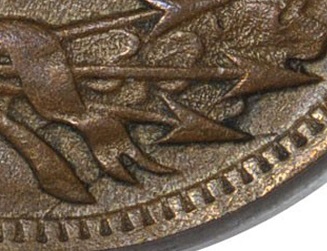 crack forms from 11:00 downward through the left wreath and clash marks