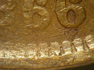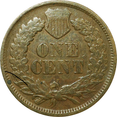 Reverse AA has developed the following die crack: 1. Die Crack from the rim at 8:30 downward into the olive leaves.