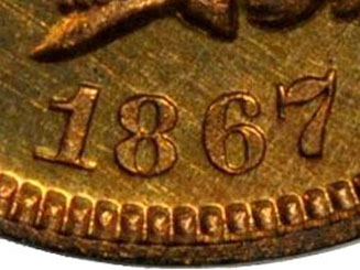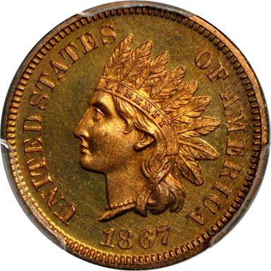 1867 Proof 1 die pairing struck all proof cents in 1867.