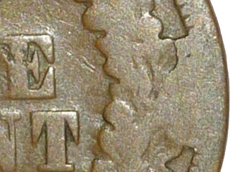 Reverse L develops a cud between 2:30 and 3:30. Reverse L acquires at least two sets of clash marks to the right of the denomination.