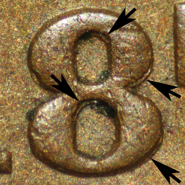 Macro Photography Of Obverse 9 Repunched Digits | ||