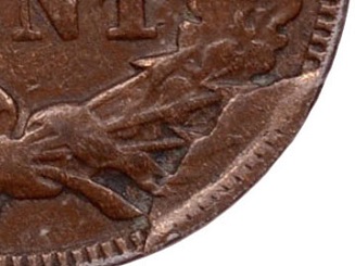 Obverse 4 is observed with date placement at LE. Obverse 4 develops the following die cracks: 1.