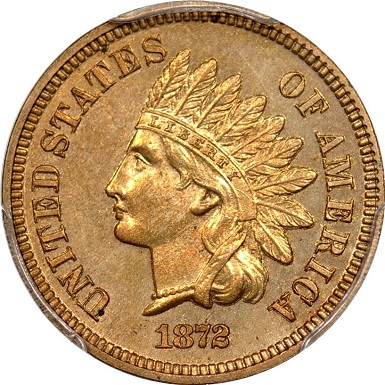 The 1872 proof 1 was the only die pair striking proof cents in 1872.