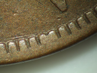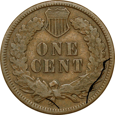 1. Moderately heavy die crack from the rim at 3:00 extends
