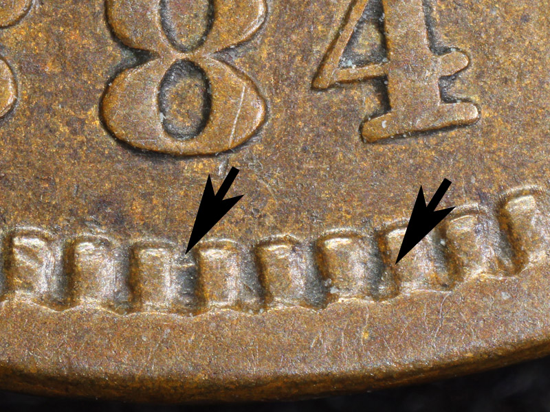 misplaced 8 and 4 digit within the denticles below the primary second 8