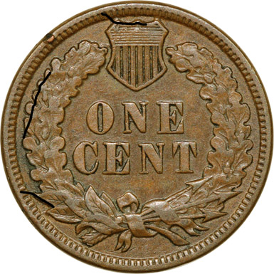 left wreath and atop left wreath. The Reverse F die cracks are