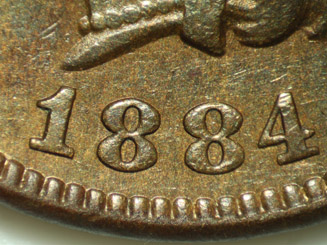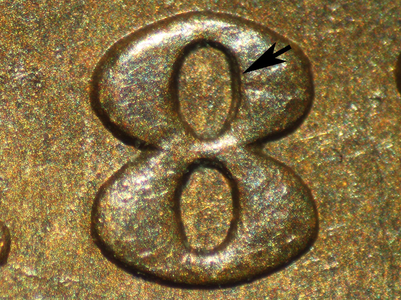 2. Die crack connects the base of the 1 and '(UN)ITED'.
