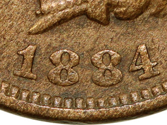 date impressions within the lower loops of the 8 digits are from the