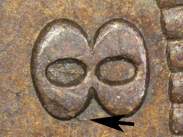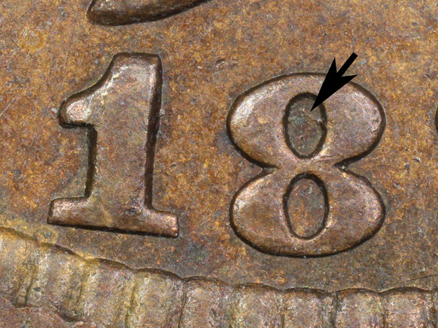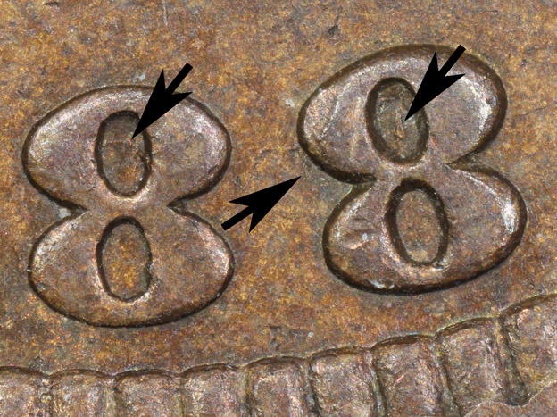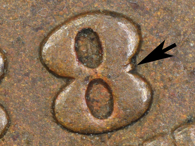 ![]() Obv. 5.2 Die Chip At Right Side Of 3rd 8 (Click Image To Enlarge) |