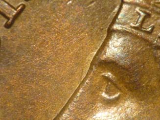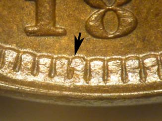 denticles between the 1 and 8 of the date; repunched date with initial