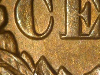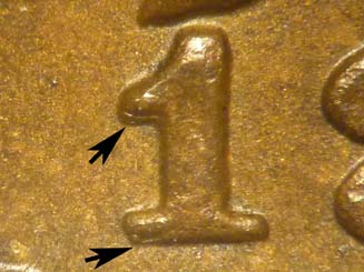 date impressions to the south below the serif and base of the 1 as well