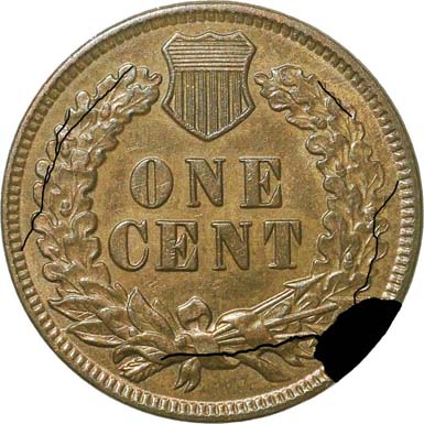 3. Moderately heavy die crack from the cud through the bottom