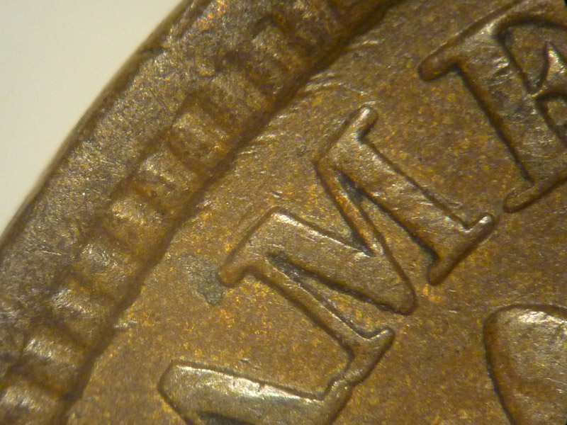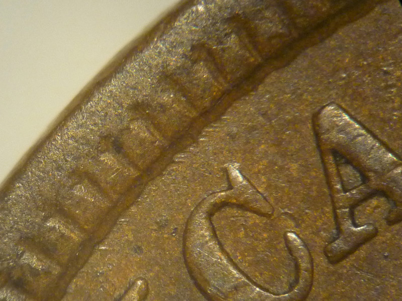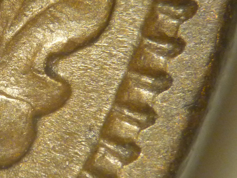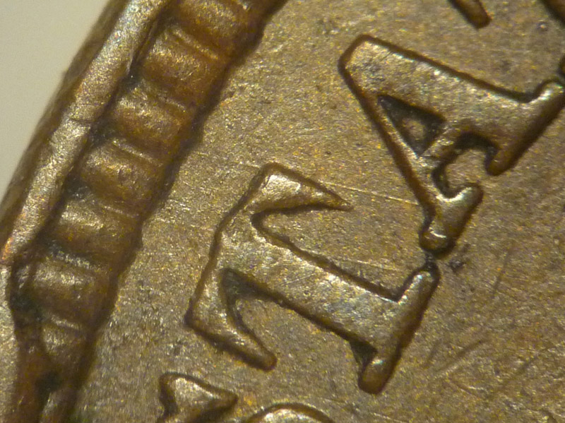 the denticles above (AME)RICA, lighter die file marks above AMER(ICA)