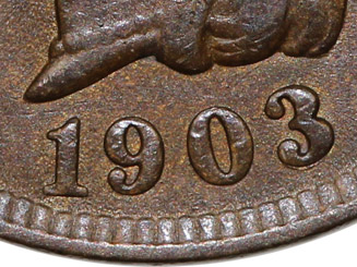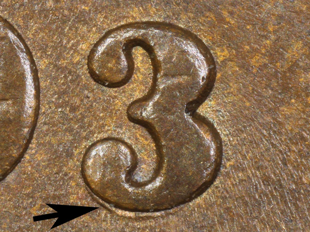 the 3 digit. Obverse 5 has acquired clash marks from a clashing