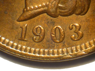 middle section of the 3, with date placement at RH. Obverse