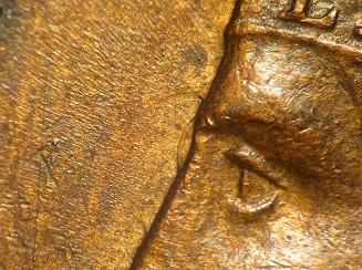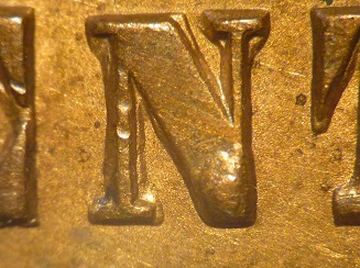 bottom right of N of CENT and a solitary die polish line above the