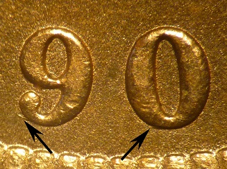 9 and 0 digits, with date placement at B. Obverse 29 has