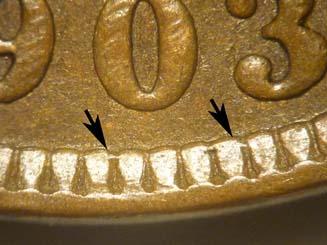 primary 0 and 3 of the date. Obverse 34 has developed moderately